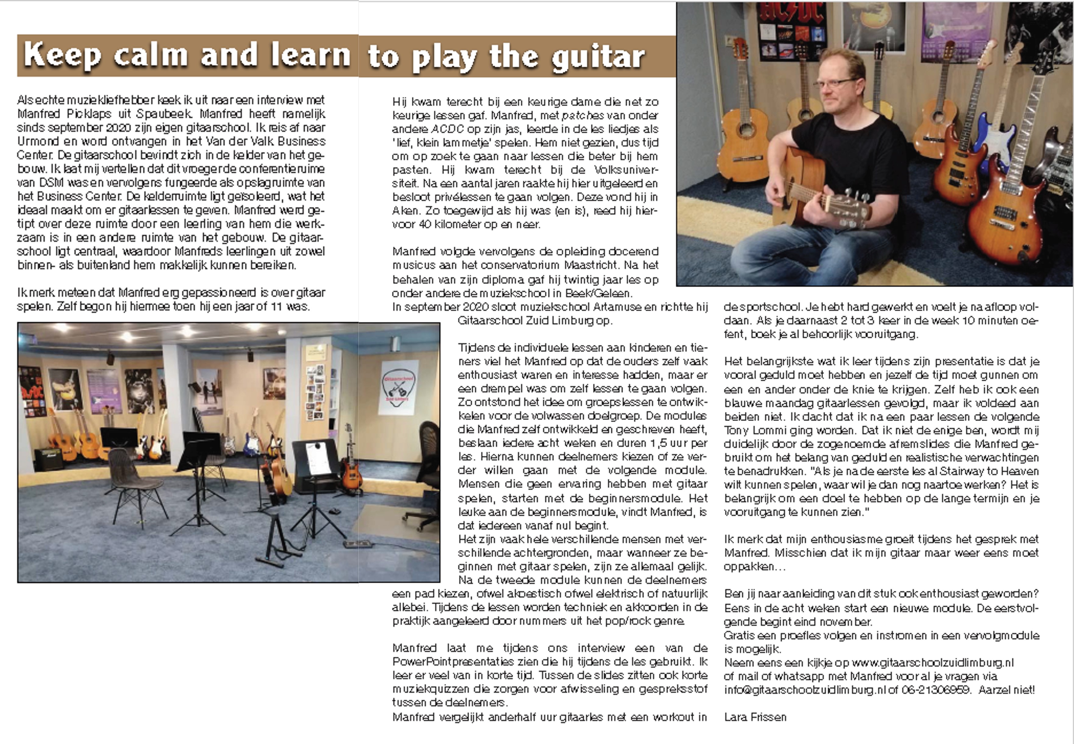 Sinds September 2020 is Manfred Picklaps trotse oprichter en eigenaar van Gitaarschool Zuid Limburg.